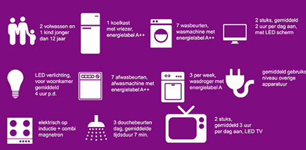 Een energiebewust gezin van drie personen (2 volwassenen en 1 kind jonger dan 12 jaar) heeft door de zonnepanelen voldoende energie voor huishoudelijk gebruik.